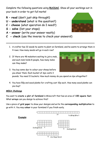 Minecraft Multiplication And Division Word Problems Teaching Resources
